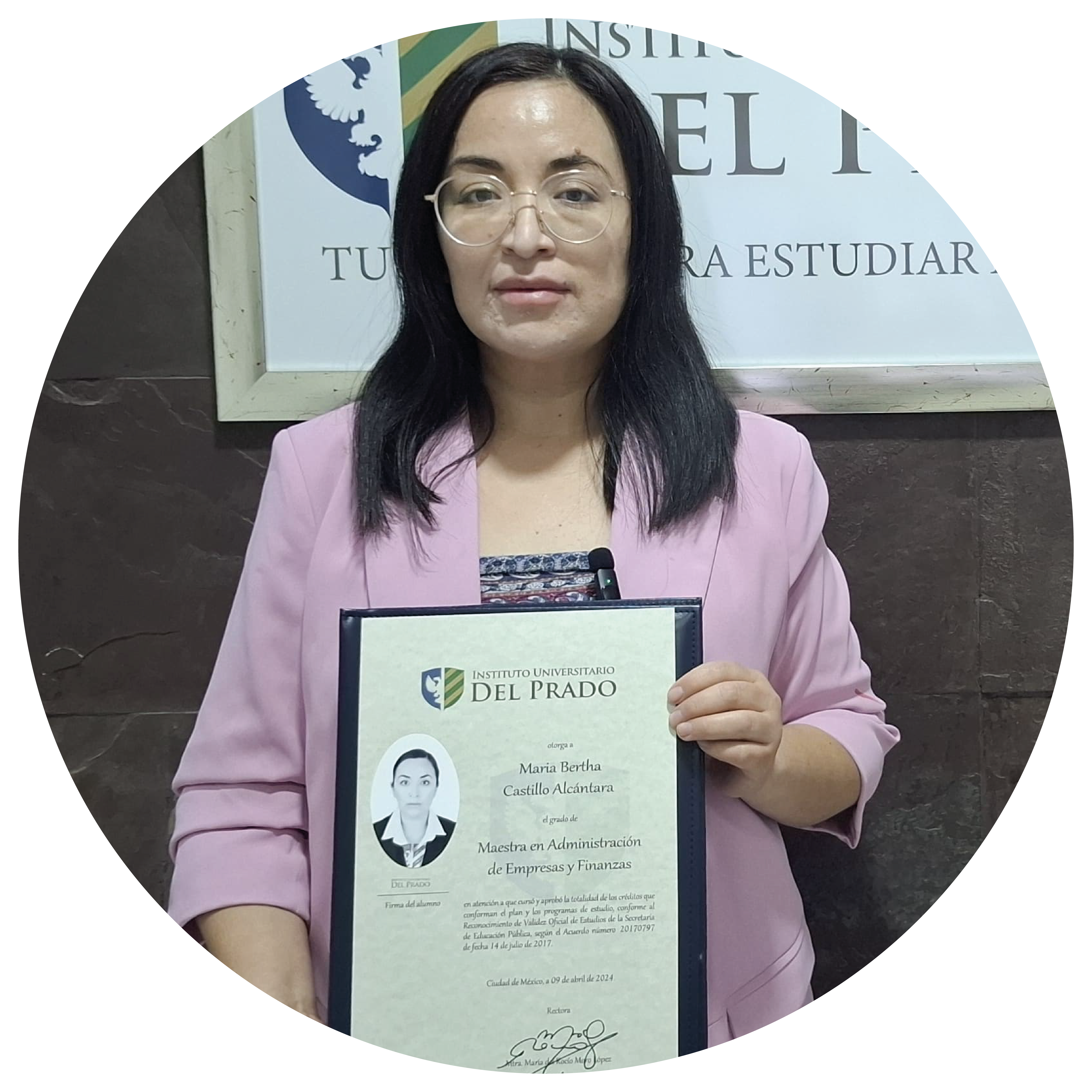Maestra en Administración de Instituciones Educativas, Licenciada en Mercadotecnia con un Posgrado en Gerencia de Mercadotecnia